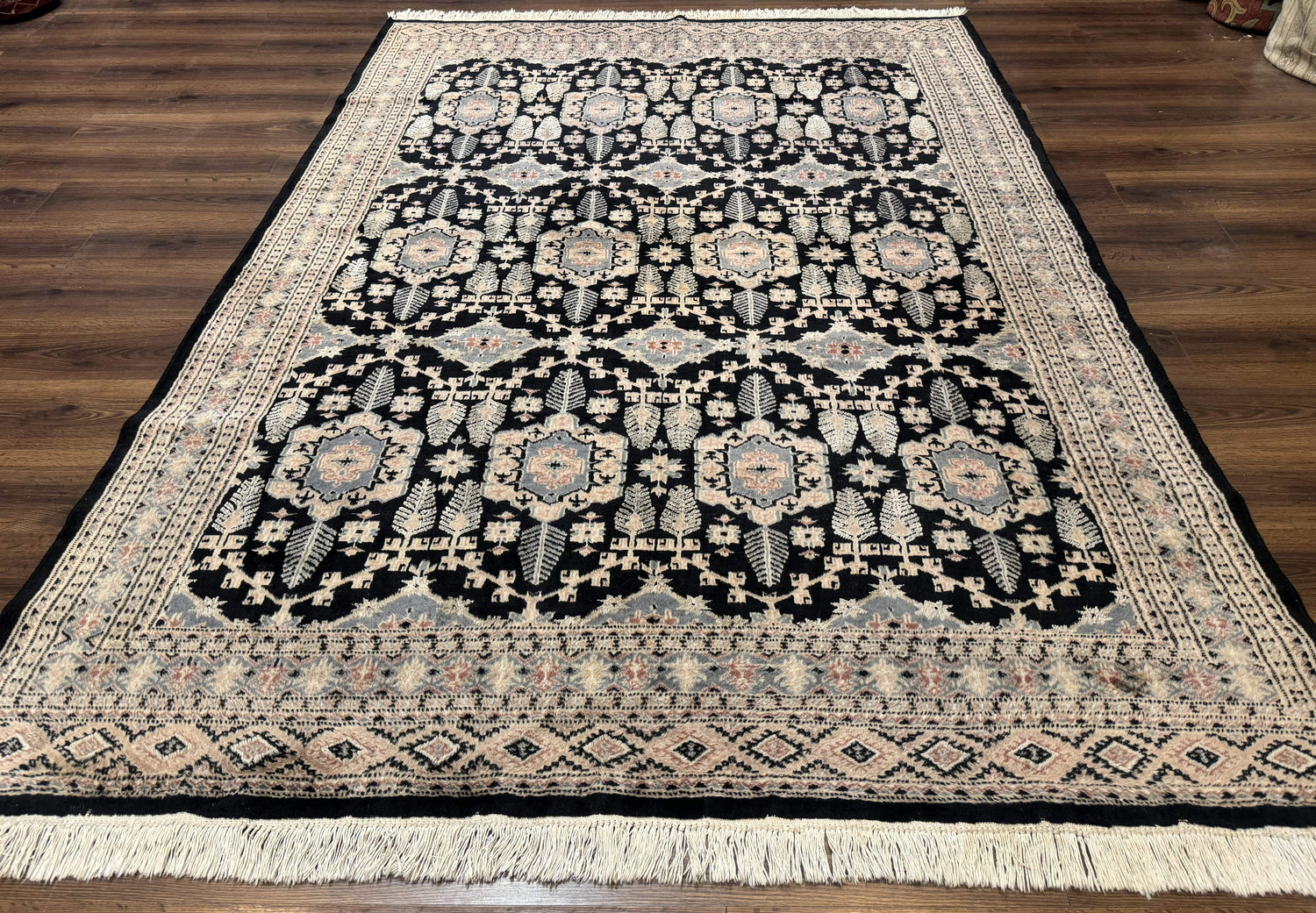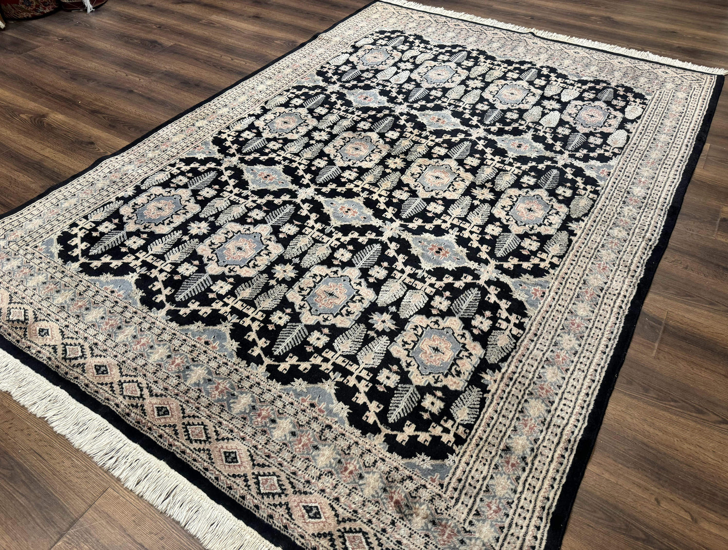 USED Turkoman Bokhara Rug 6x9, Pakistani Carpet, Black, Hand Knotted