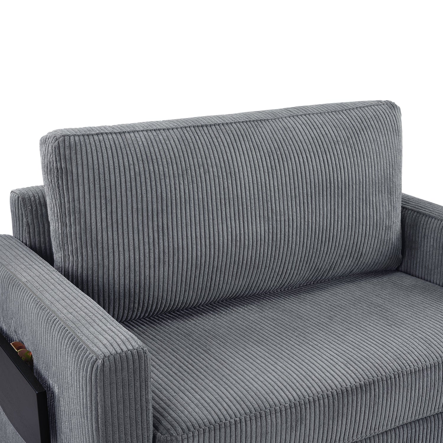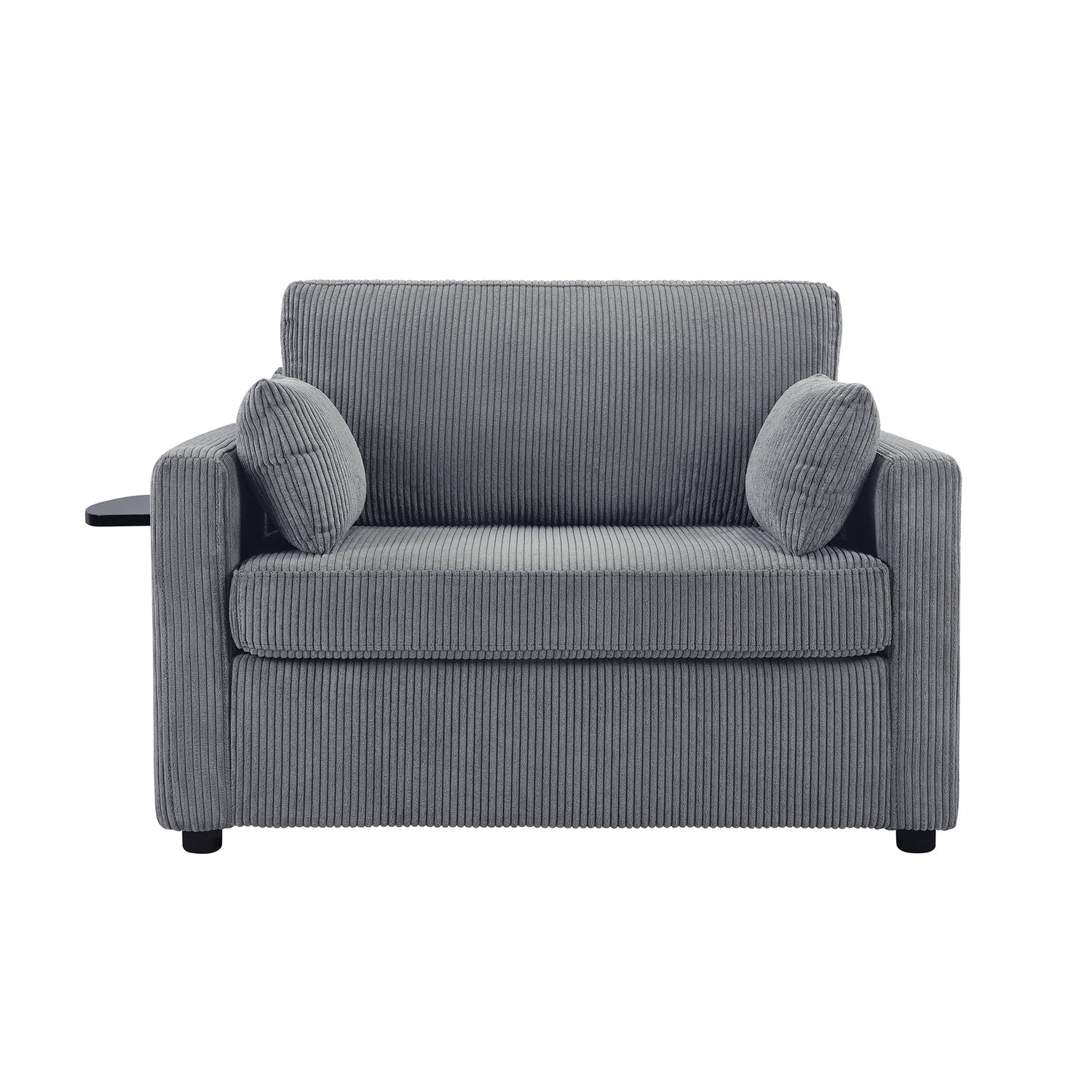 NEW Twin Size 47.2' Gray Corduroy Sleeper Loveseat Sofa Bed with Foldable Mattress USB Ports Side Table & Storage Pocket