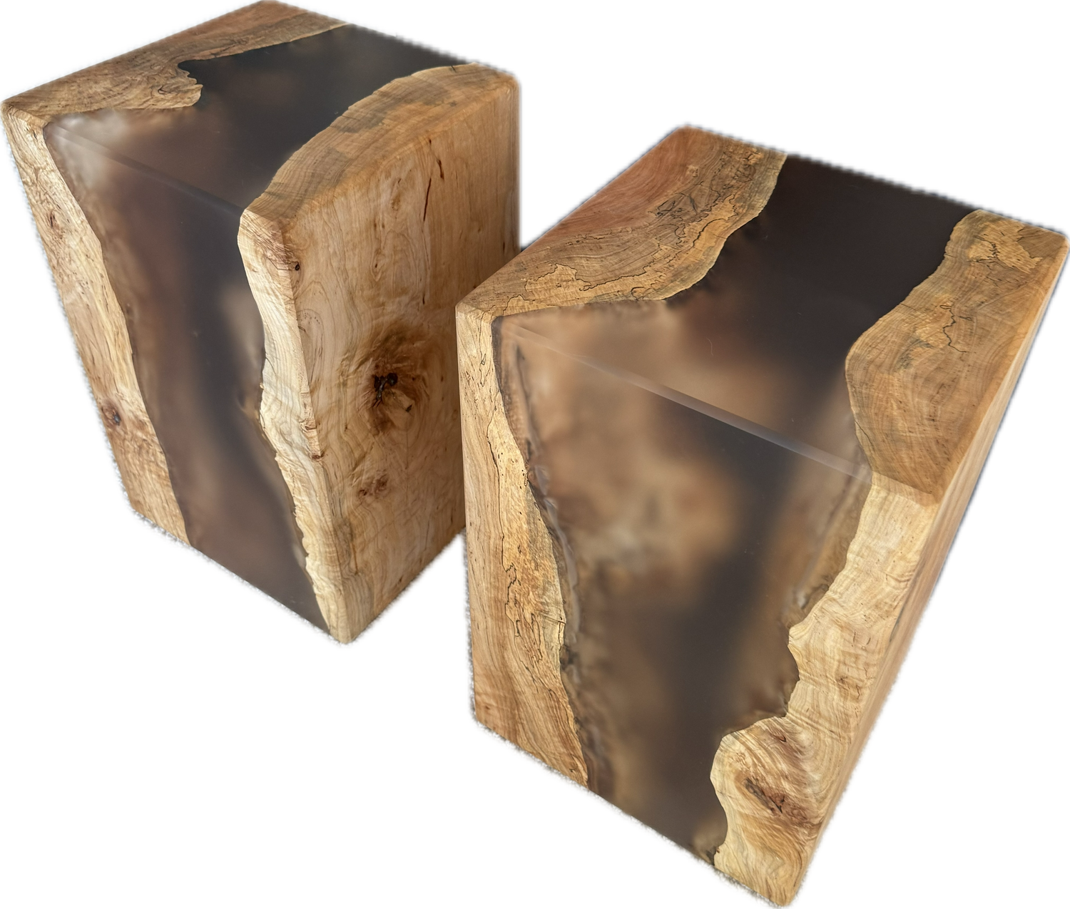 Two 12x12x18 Maple and epoxy end tables, super heavy and sturdy! Price is for both.