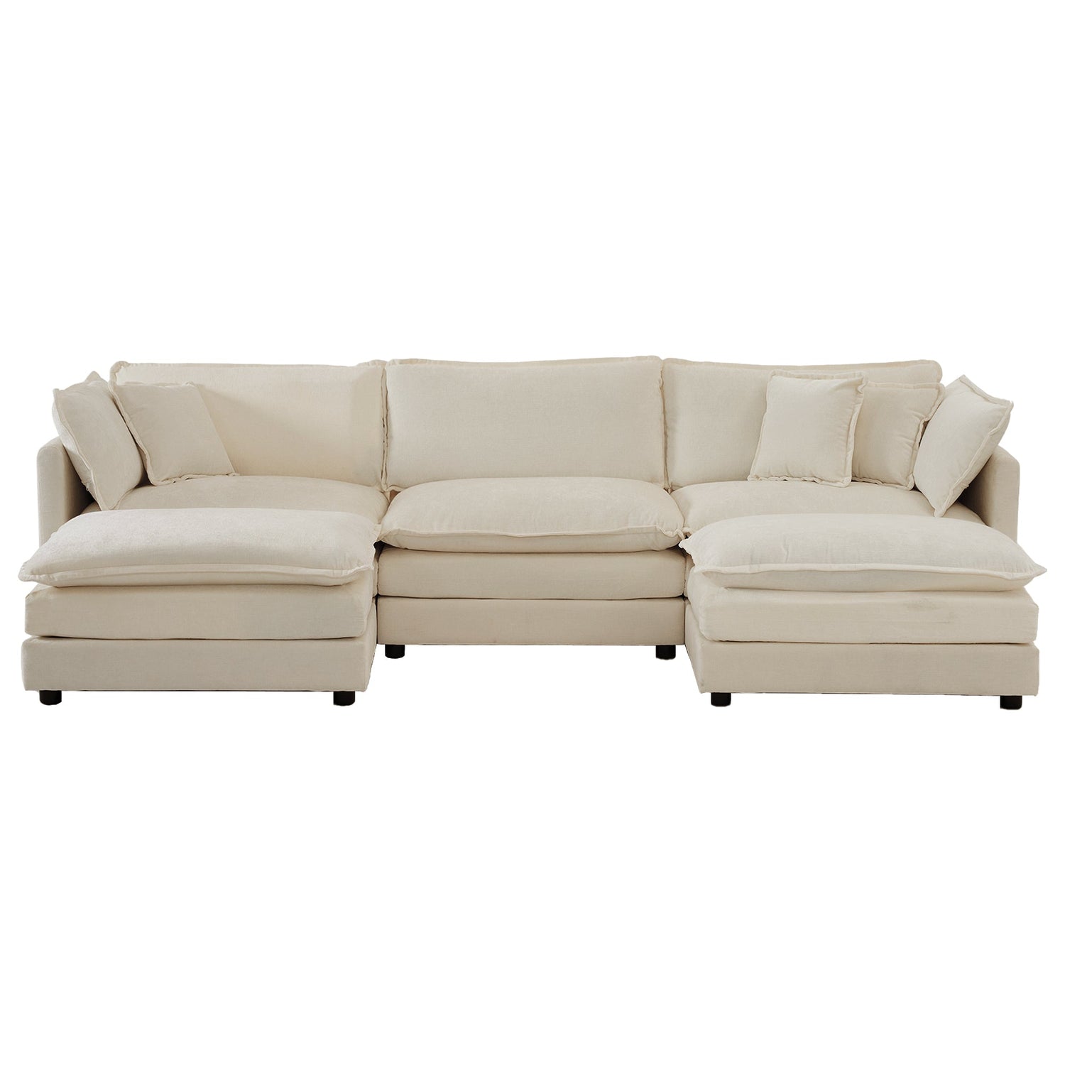 NEW U-Shaped Sectional Sofa w/Reversible Footrest, 5-Seater Convertible Corner Couch with 2 Ottomans ,Modern Minimalist Soft Sofa & Couch for Living Room , Beige Chenille