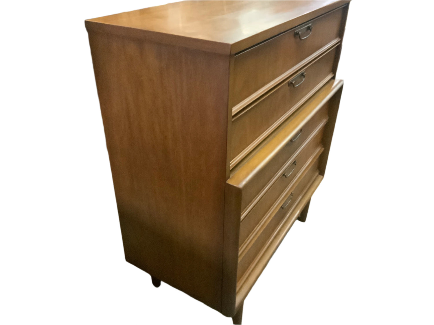 United Mid Century Modern Five Drawer Chest on Chest of Drawers