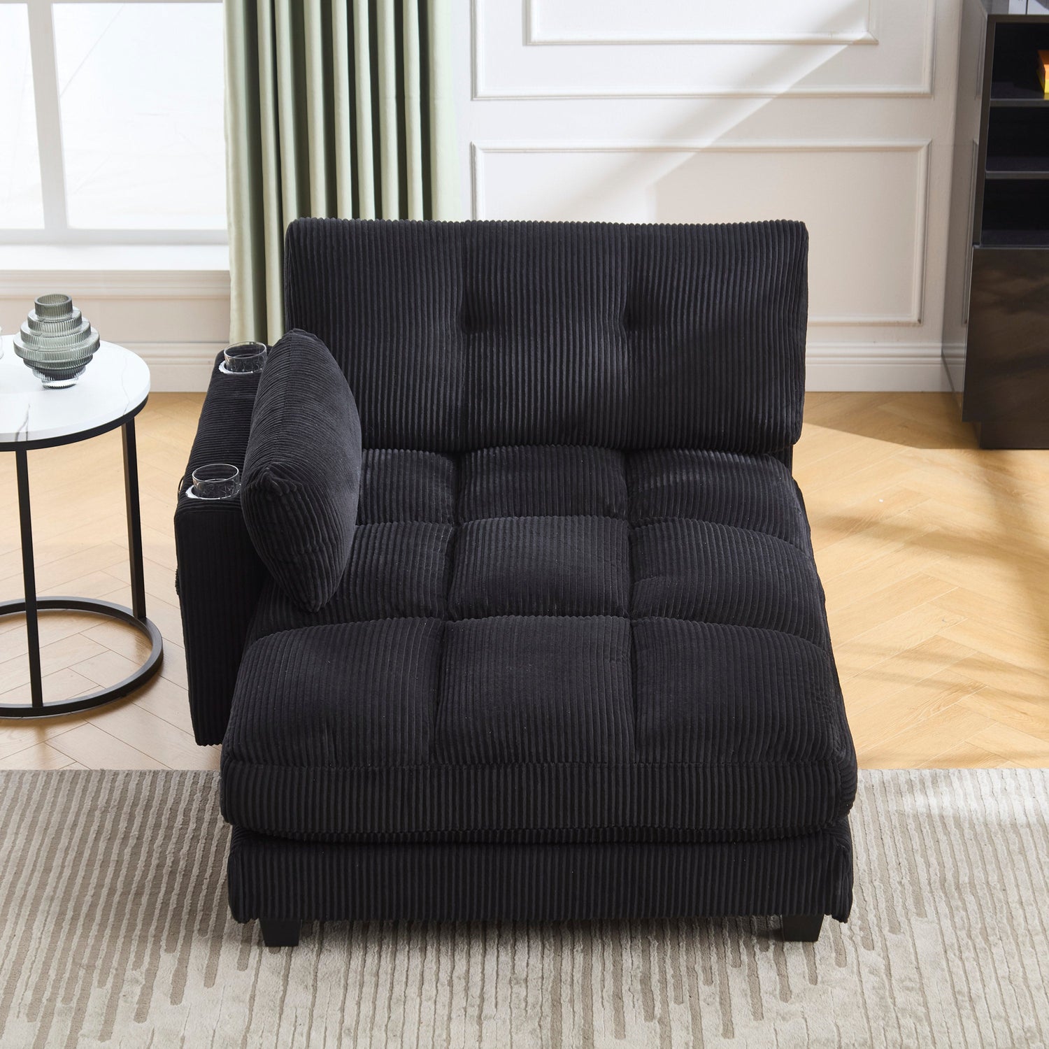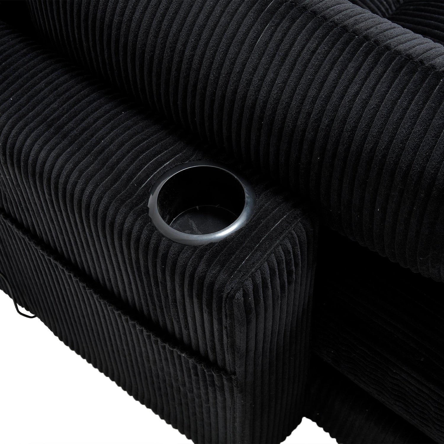 This sofa is designed with great ingenuity. It is equipped with side storage pockets, which can be used to neatly place various small items, meeting daily usage needs. At the same time, it is equipped with two cup holders that are stable and durable, ensuring the safe placement of all kinds of beverages. The backrest of the sofa is adjustable, allowing for flexible adjustment to a comfortable angle according to the user's needs, thus bringing users a pleasant and comfortable experience.
