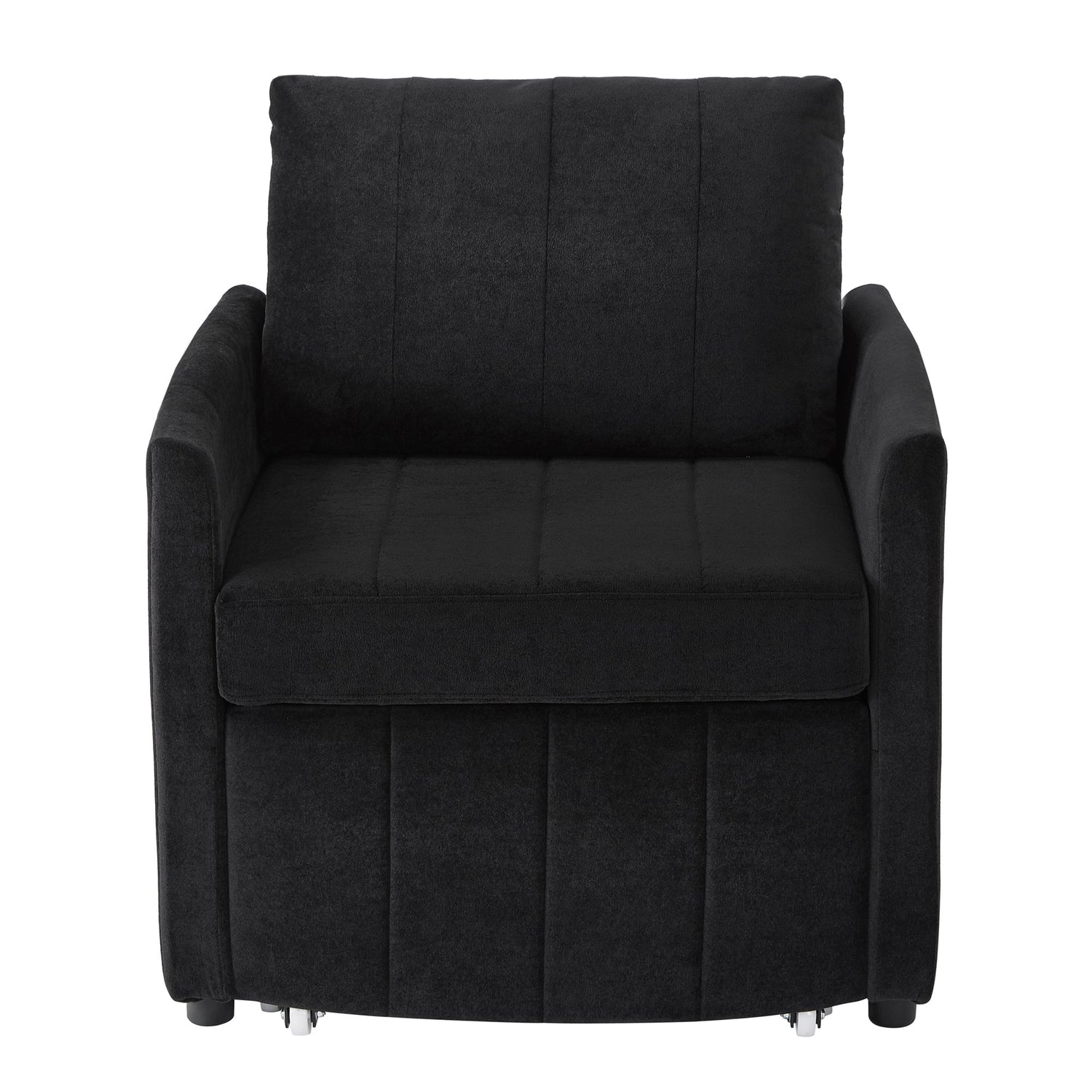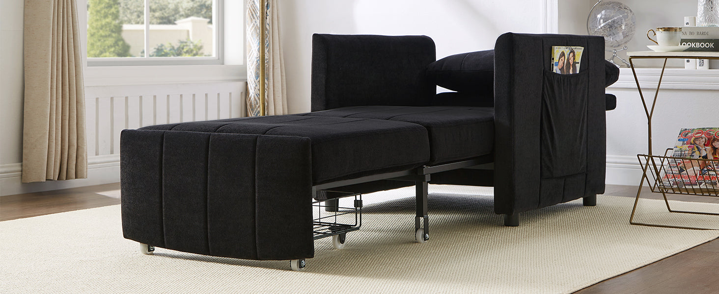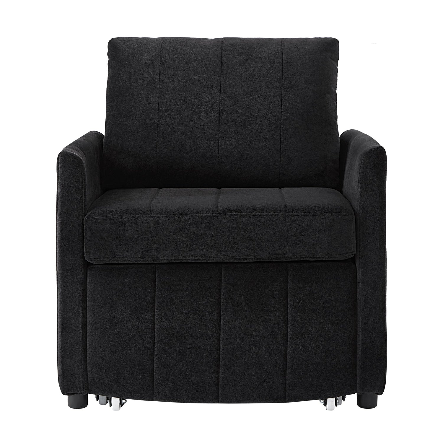 NEW Black Chenille Upholstered Convertible Sleeper Sofa with 5-Position Backrest Side Pockets Storage