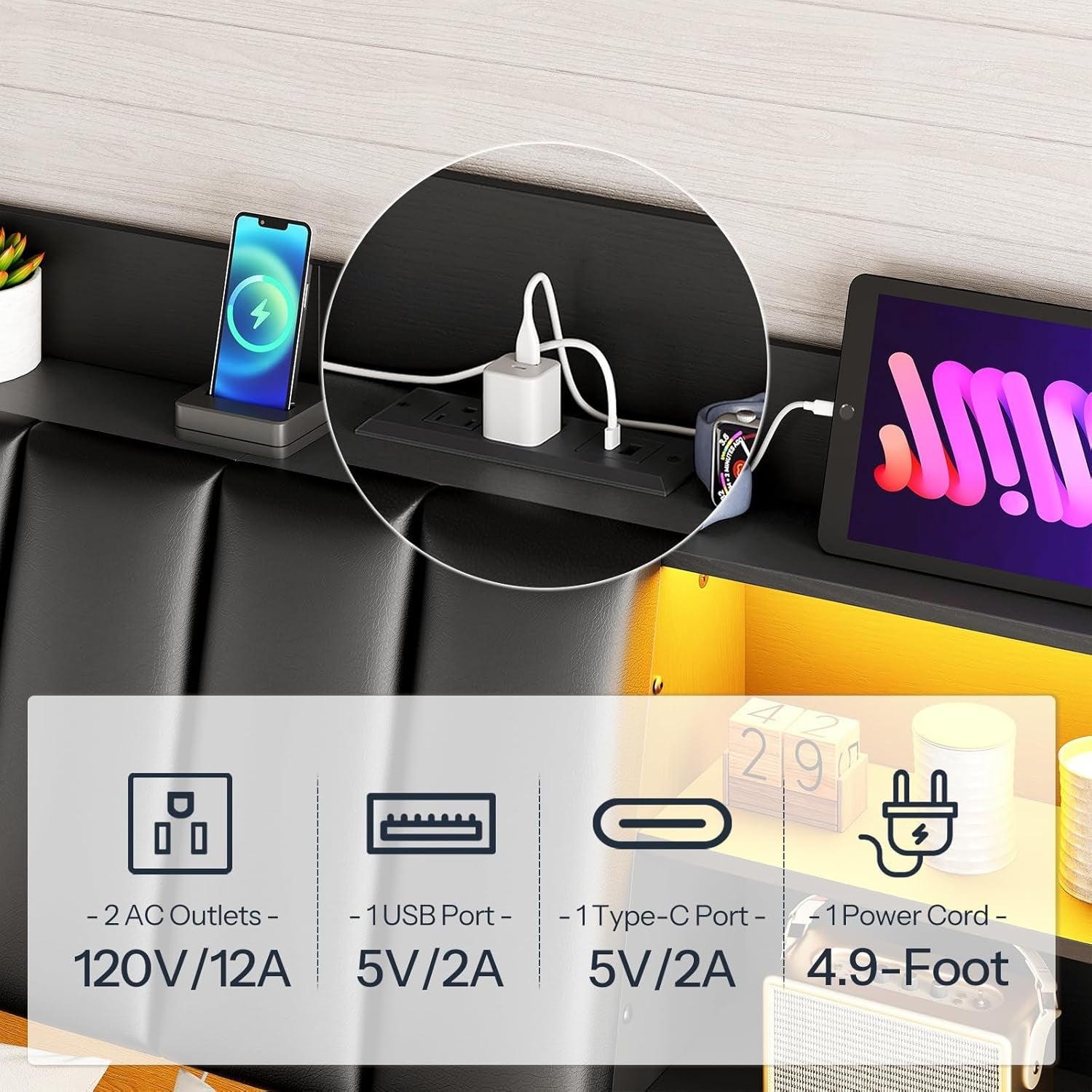 This full-size headboard also includes a utility charging station, complete with a power outlet, perfect for keeping your devices charged and within reach. No more fumbling in the dark for your phone or tablet; stay connected and cozy in your restful sanctuary.