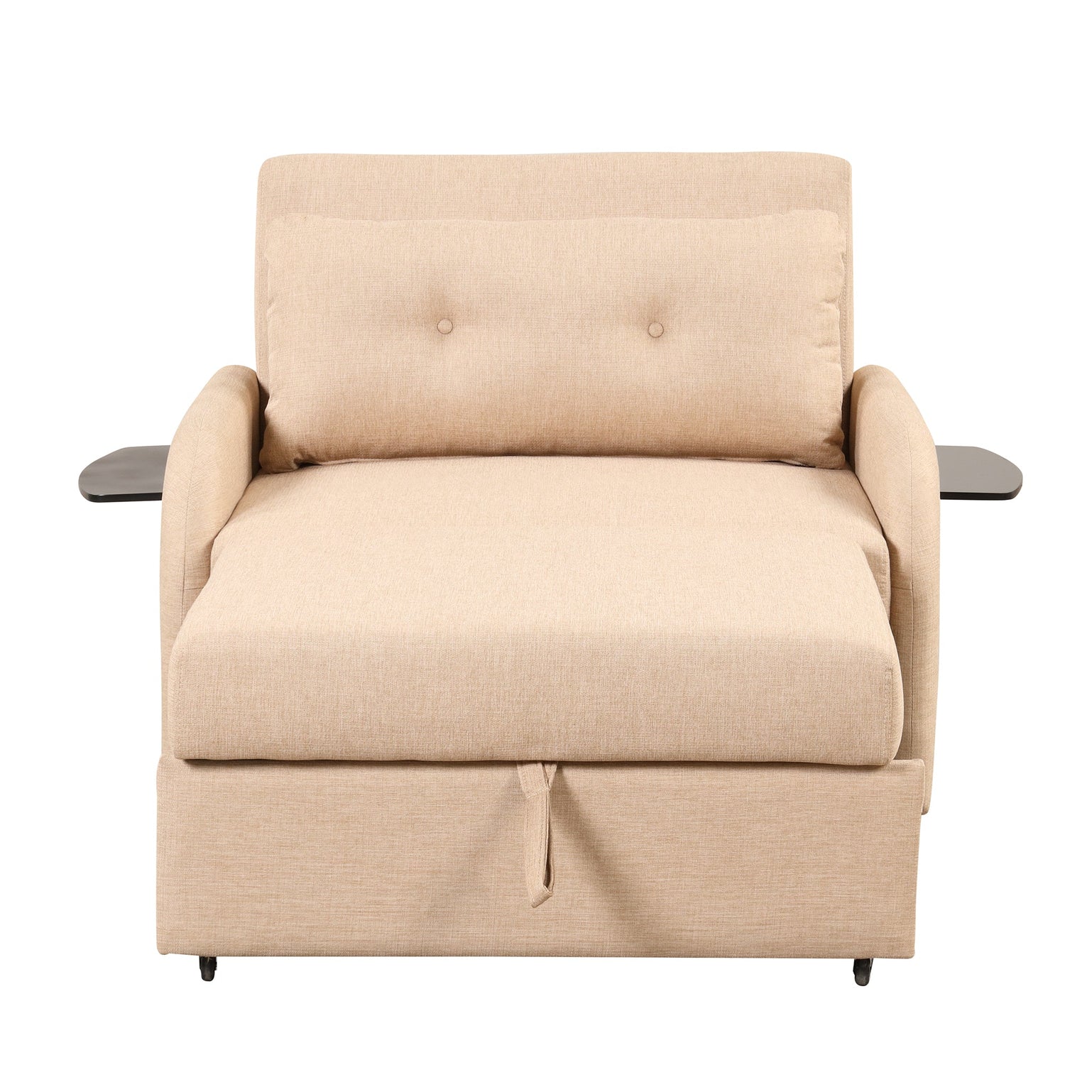 NEW Versatile Pull Out Sofa Sleeper 3 in 1 with Wing Table & USB Charge, Beige Linen, Compact Design