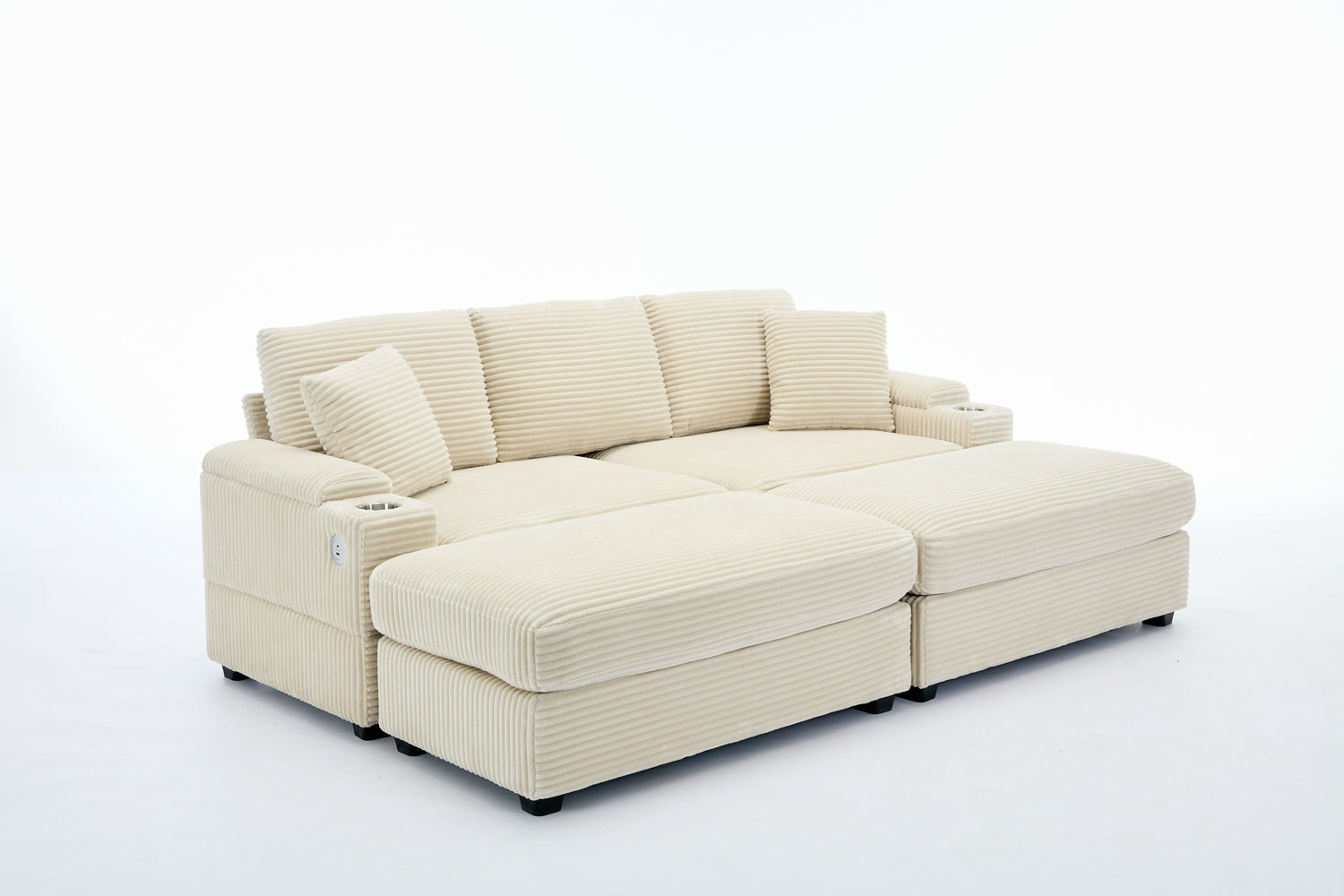 NEW Combination Modular Convertible Sectional Upholstered Deep Seat Sofa Bed Set with Armrest Storage Stainless Steel Cup Holders and USB Ports
