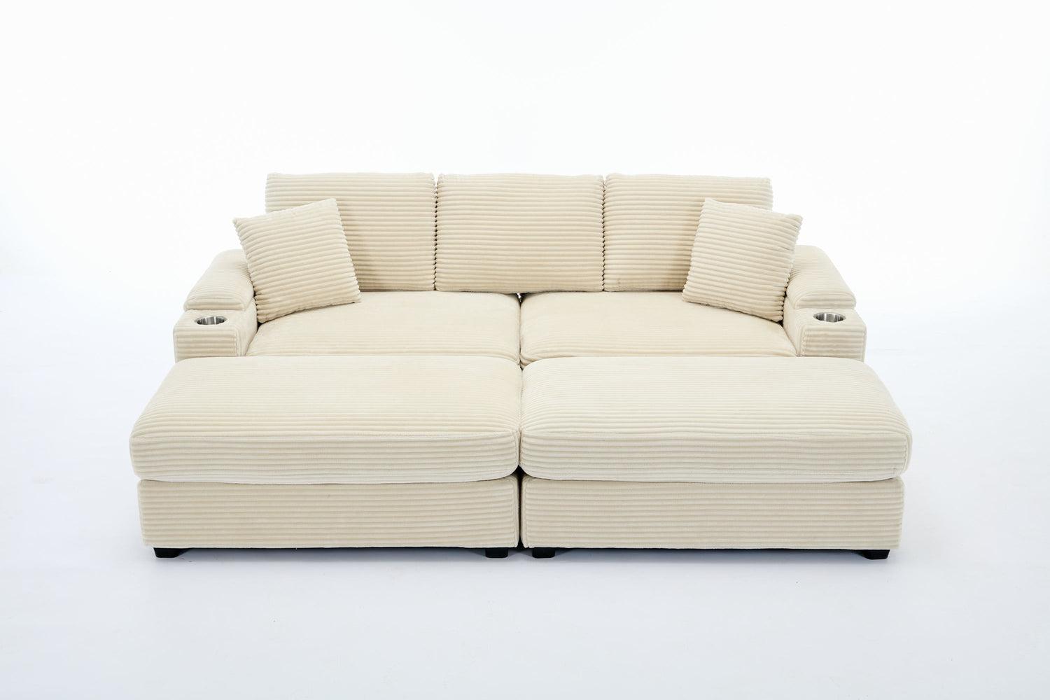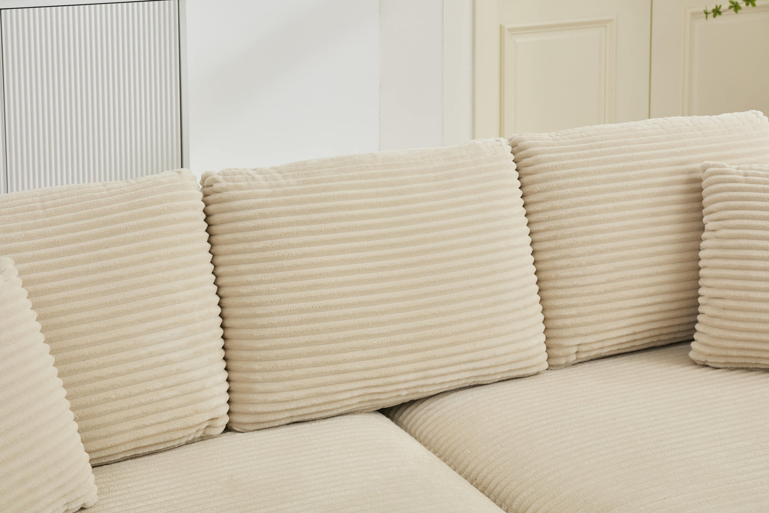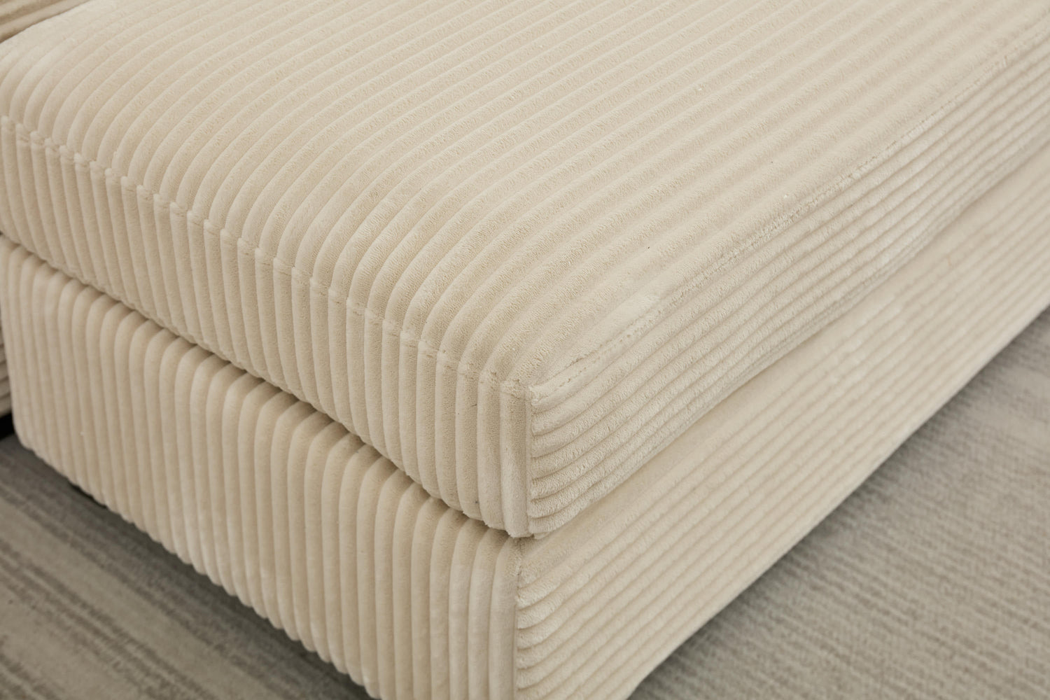 - Superior comfort:Upholstered in high-end breathable corduroy fabric and high-quality sponge, with cushioned thick foam at backrest and seat for prime relaxation. Lean back and stretch out your legs out long on the ottomans when you or guests need more space. Customize the placement of the 2 pillows anywhere you would like to add extra support when sitting after a long day or watching a movie.
