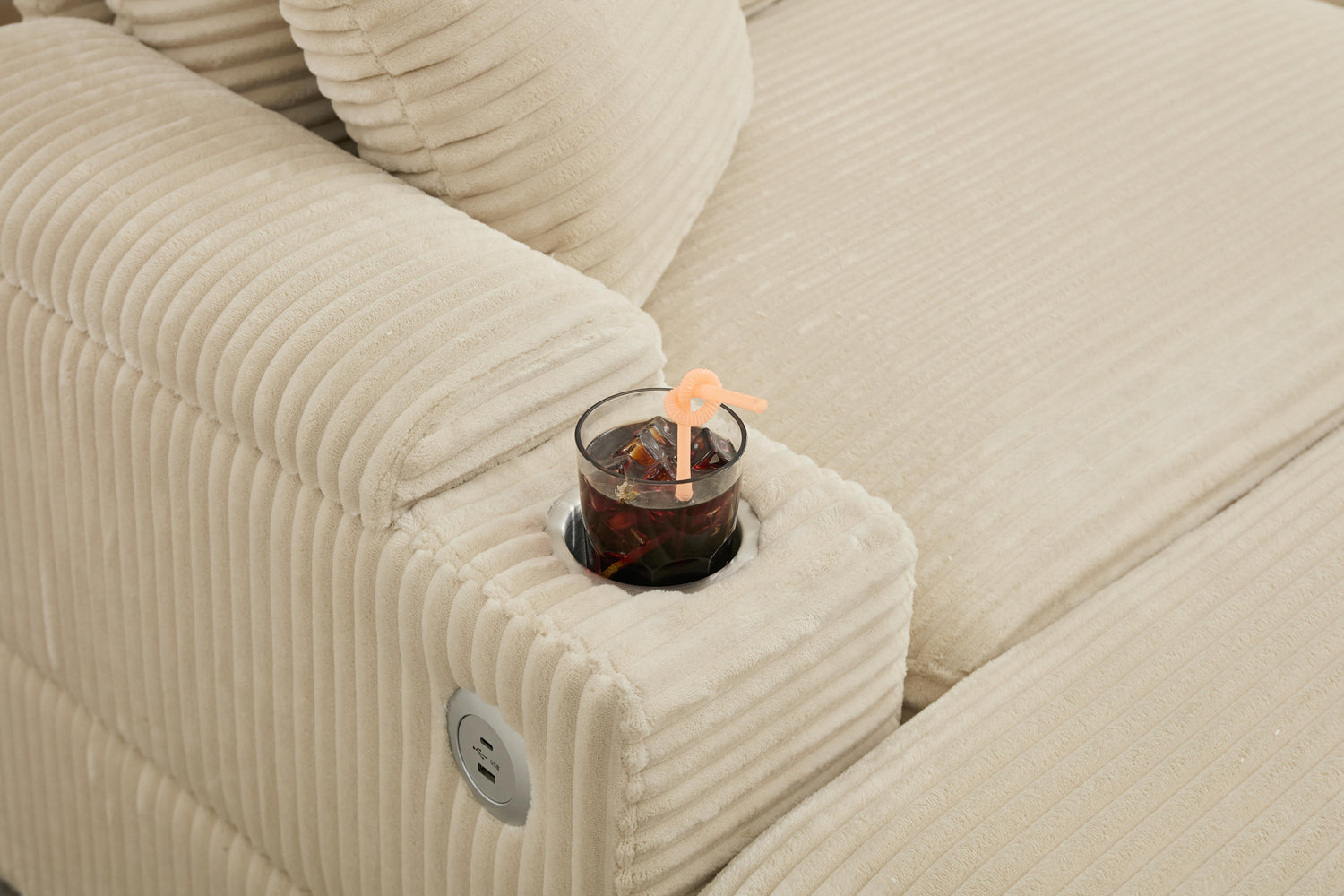 - USB Charging Port & 2 Cup Holders:This modern sofa has USB charging ports, there is no need to worry about your phone running out of power. There are two cup holders on the armrests, so you can place water cups and drinks when you are resting on the sofa. Convenient design allows you to enjoy the perfect afternoon