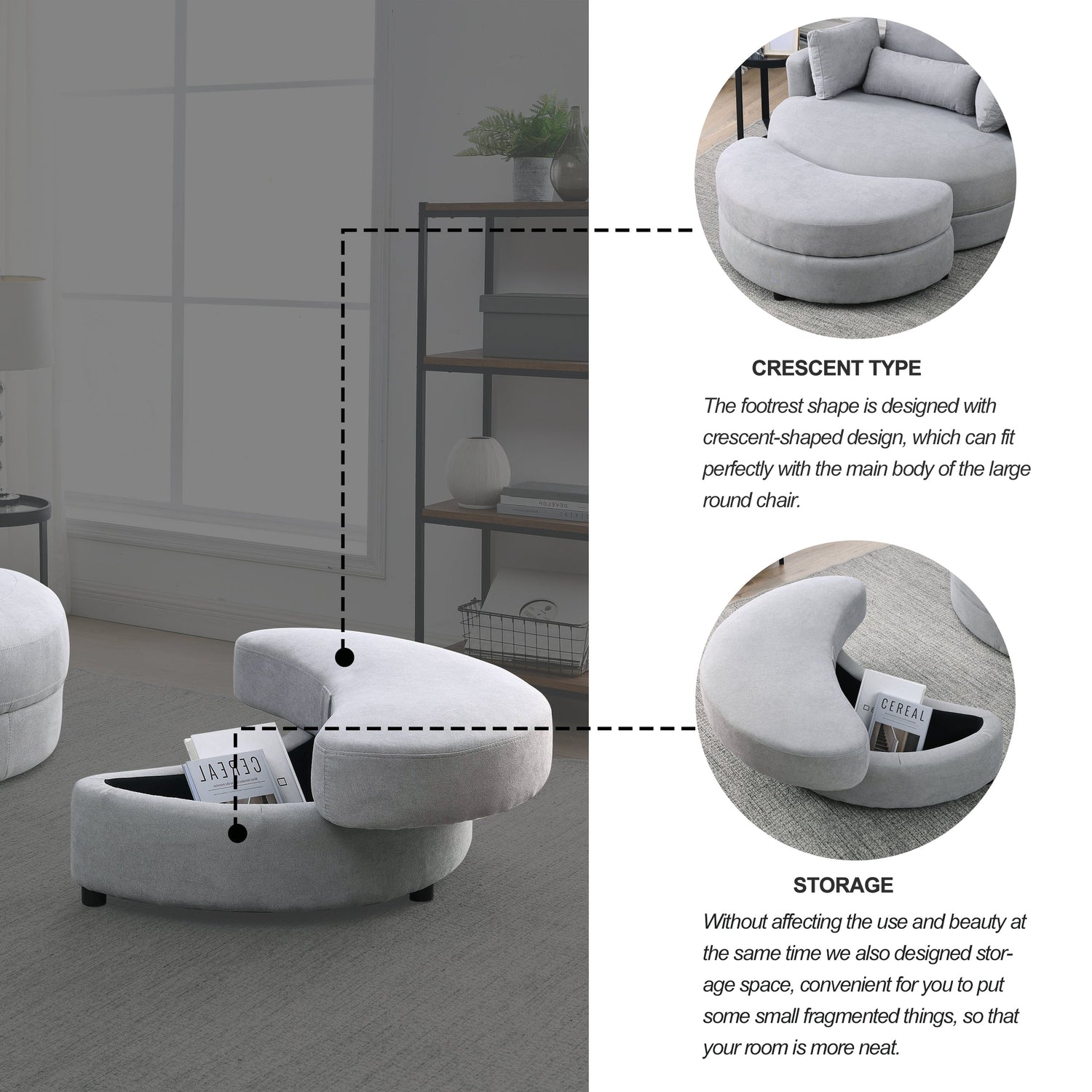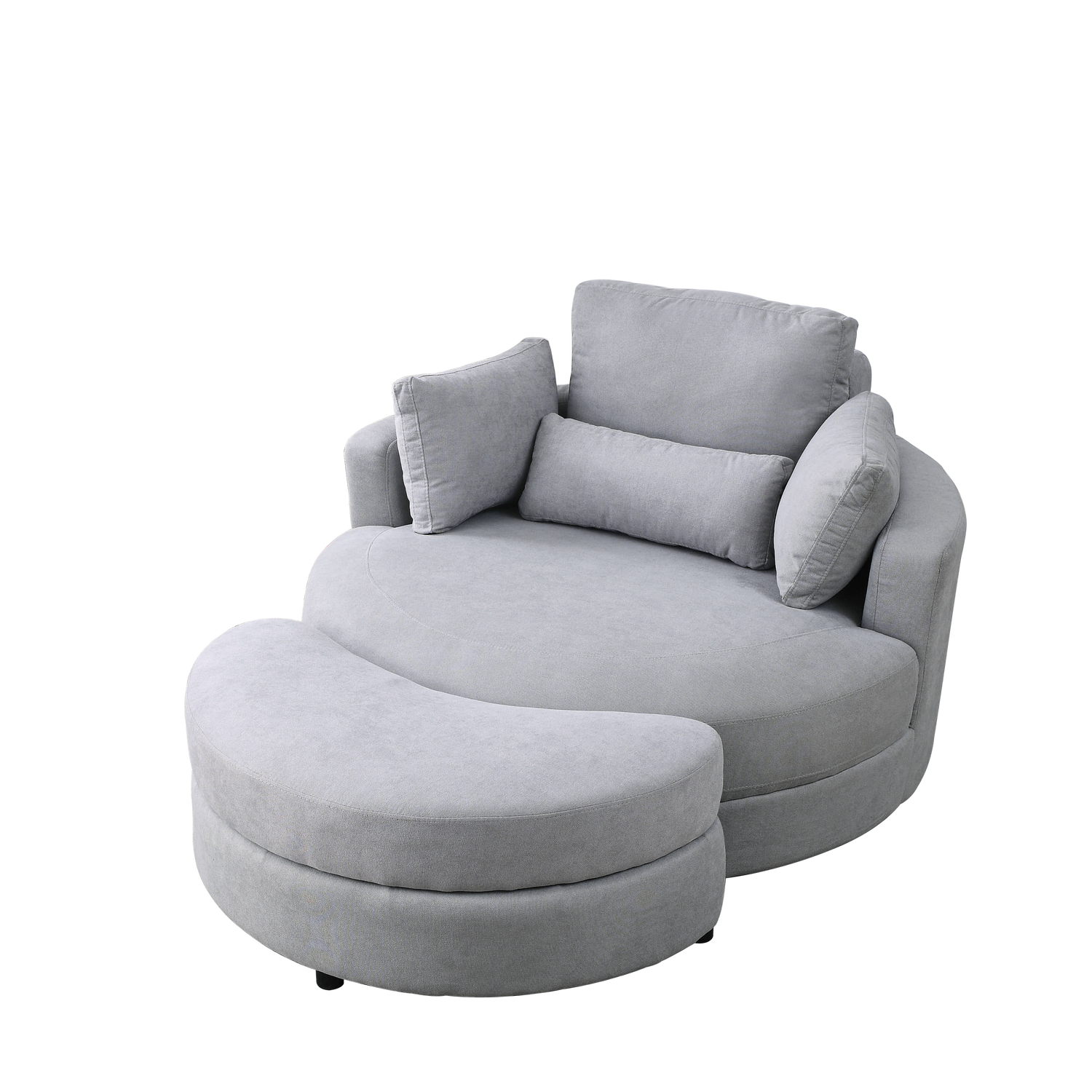 NEW We Like Swivel Accent Barrel Modern Grey Sofa Lounge Club Big Round Chair with Storage Ottoman Linen Fabric with Pillows