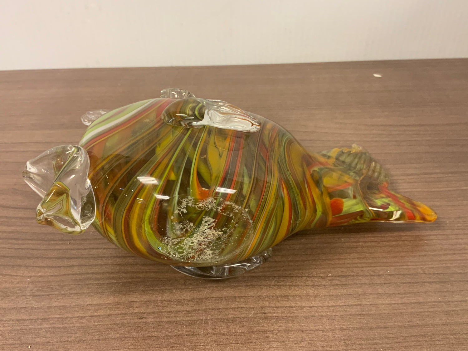 Excellent condition no cracks orange, yellow and green glass fish figurine