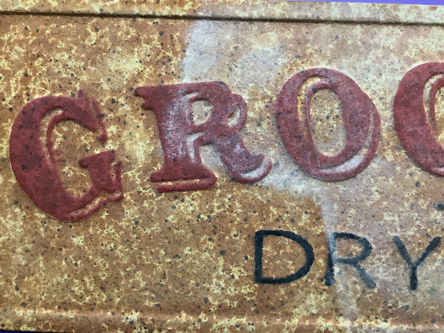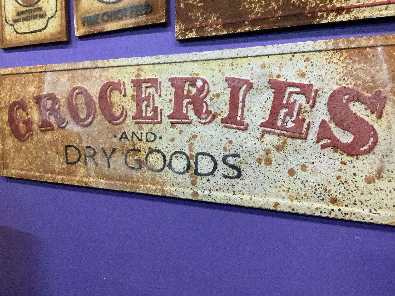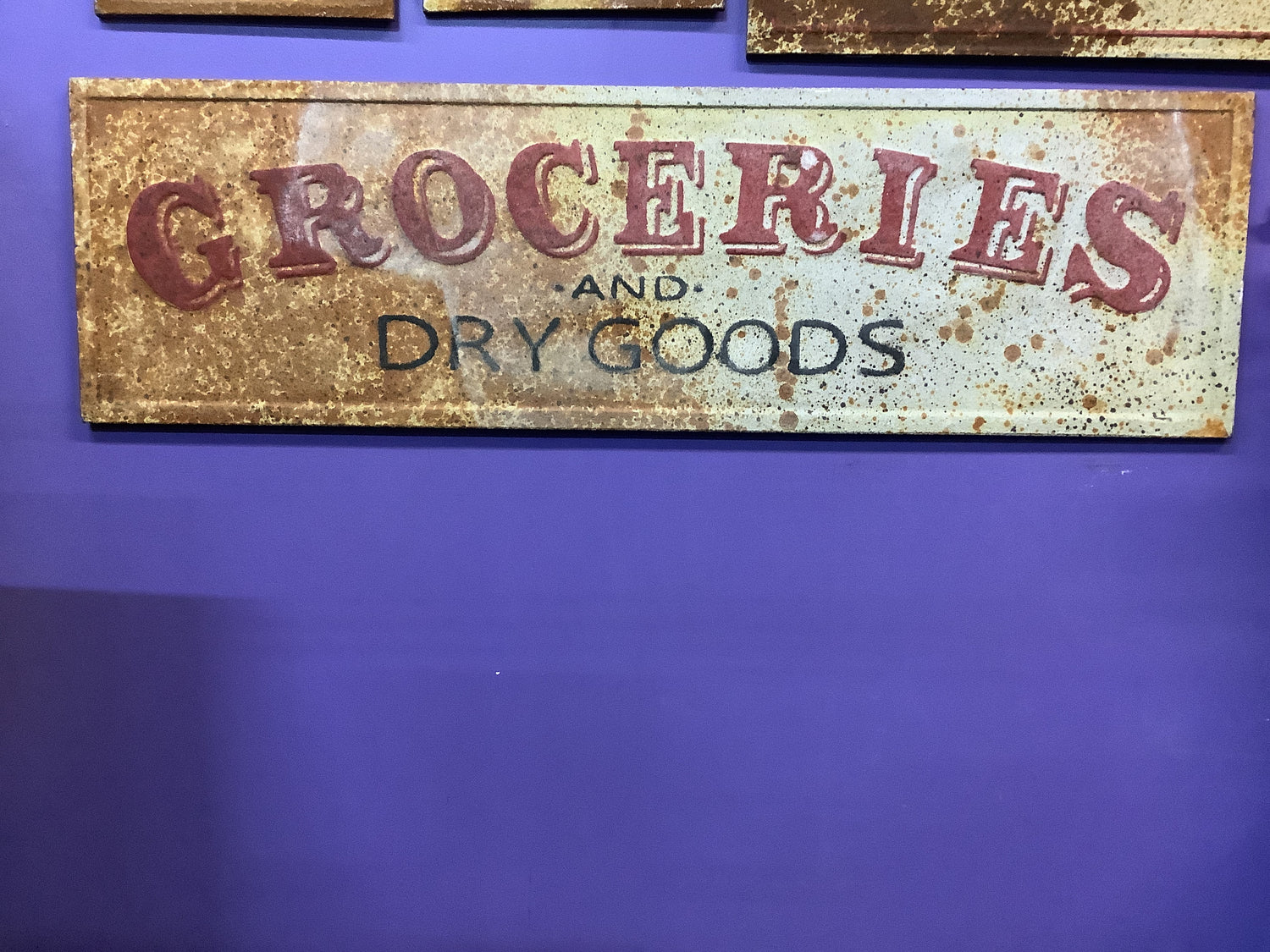 Vintage Advertising Metal Groceries and Dry Goods Sign