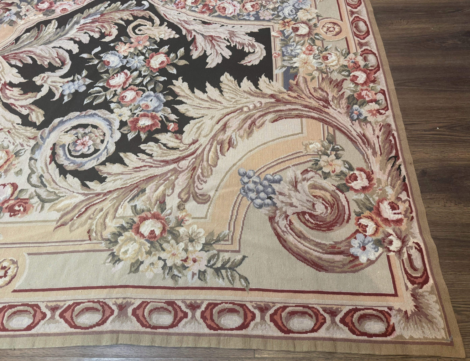 USED Wonderful Needlepoint Rug 10x14, Large Aubusson Carpet, Floral, Elegant, European Design