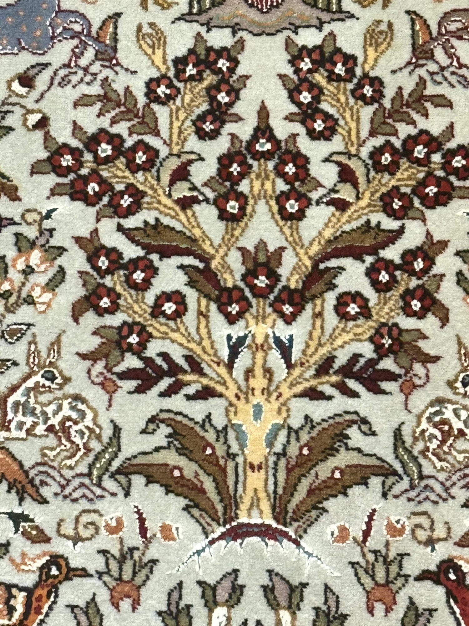 | Condition/Notes | Very good condition. Free of stains, odors, discolorations, tears, etc. Very finely hand knotted with a knot density of 330 KPSI (50 Raj). Features wonderful tree of life design with a multitude of animal pictorials. Recently cleaned and ready to be enjoyed in your space. |