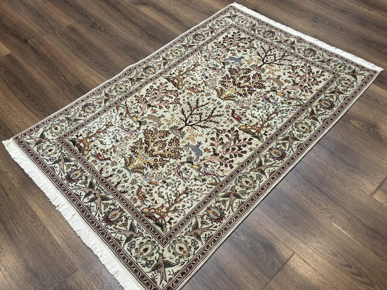 USED Wonderful Persian Tabriz Rug 3x5, Tree of Life, Animal Pictorials, Birds, Wool & Silk Highlights, Fine 330 KPSI